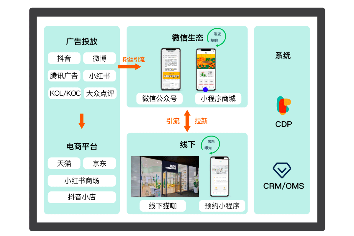 基于微信-企微-小程序为品牌完善第一方触点,实现传统门店所有服务,如线上购买、问诊预约、社区交流等功能的基础上,小程序可以更高效地链接线上线下,拓宽活动和服务的覆盖面,以会员体系、积分商城等给消费者全渠道一体化体验,培育用户忠诚度。