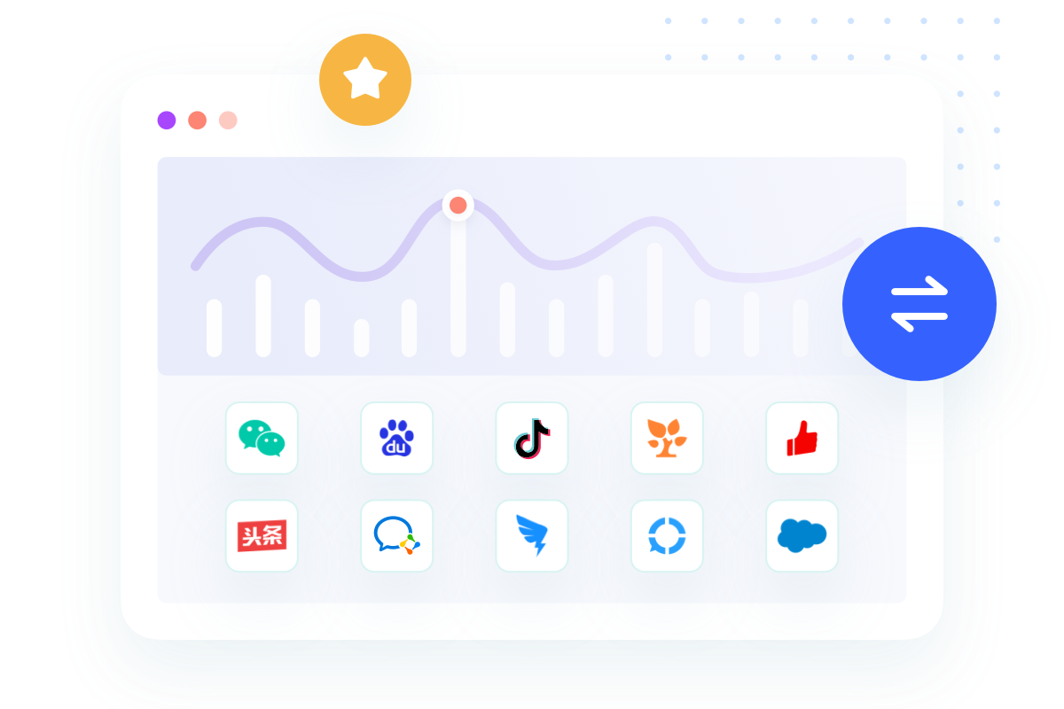 预对接100+数据源,能够快速连接各种类型的数据源中存储的客户数据,节省开发资源